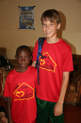 Doing the Hokey Pokey to warm everyone up while other team members handed out the t-shirts that we brought for the kids. The Hoffman home kids thought it was hilarious.