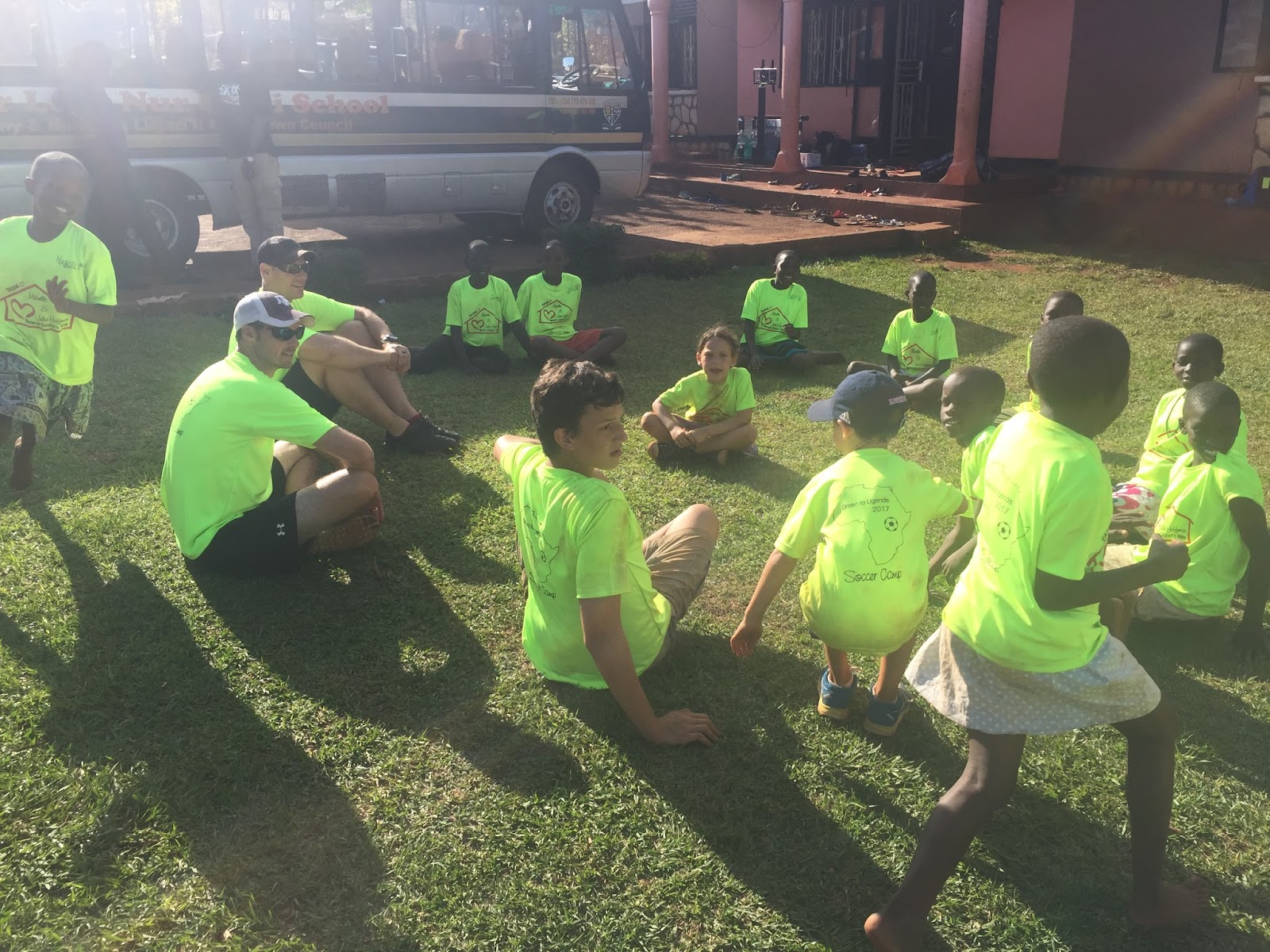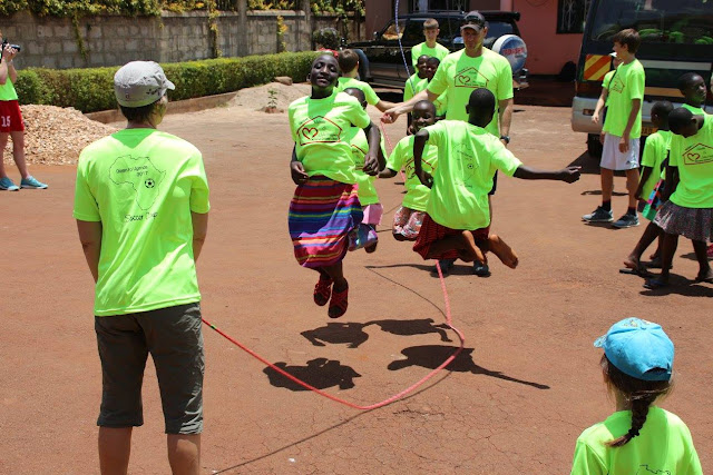 We spent all day at the home getting to know the kids and playing with the toys we had brought. Footballs (American and the soccer kind), jump ropes, bubble wands, frisbees and other outdoor activities. It was a bit overwhelming upon arrival because all the kids were swarming us and hugging everyone. Camille started crying and clung to me for the next 2 hours. That’s not a big surprise, since she doesn’t do new things well, but in this case I didn’t blame her since it was a bit much to take even for me as an adult to have all these hands and bodies touching me when we got off the bus.