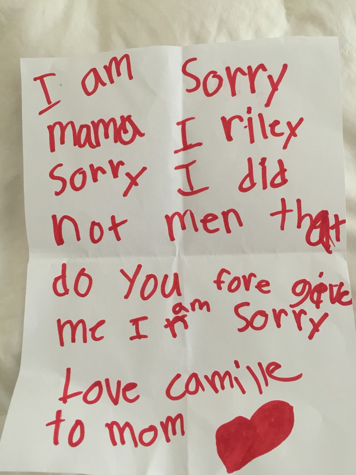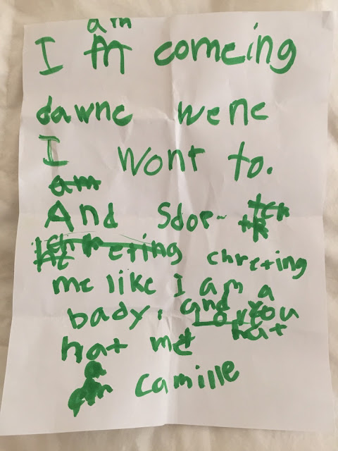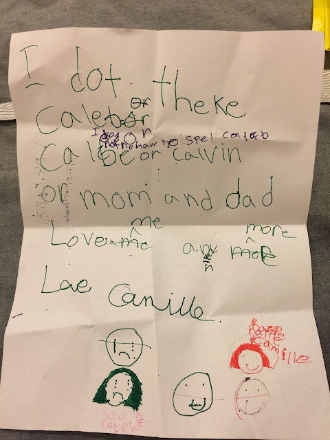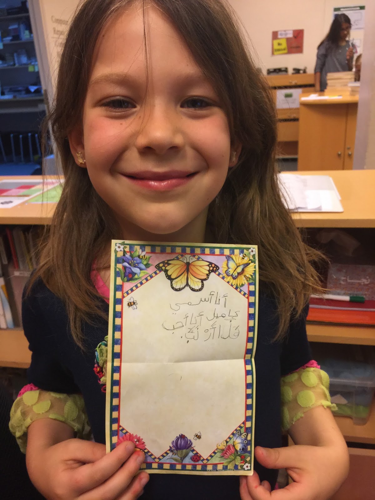 And she doesn’t just write in English. Look at that Arabic! It says something like, “My name is Camille and I love bunnies.” Let’s have more of that and less of “My mom is mean.” But I still love my little nut. Calvin summed it up perfectly when he said, “Our lives sure would be boring if we didn’t have Camille.”