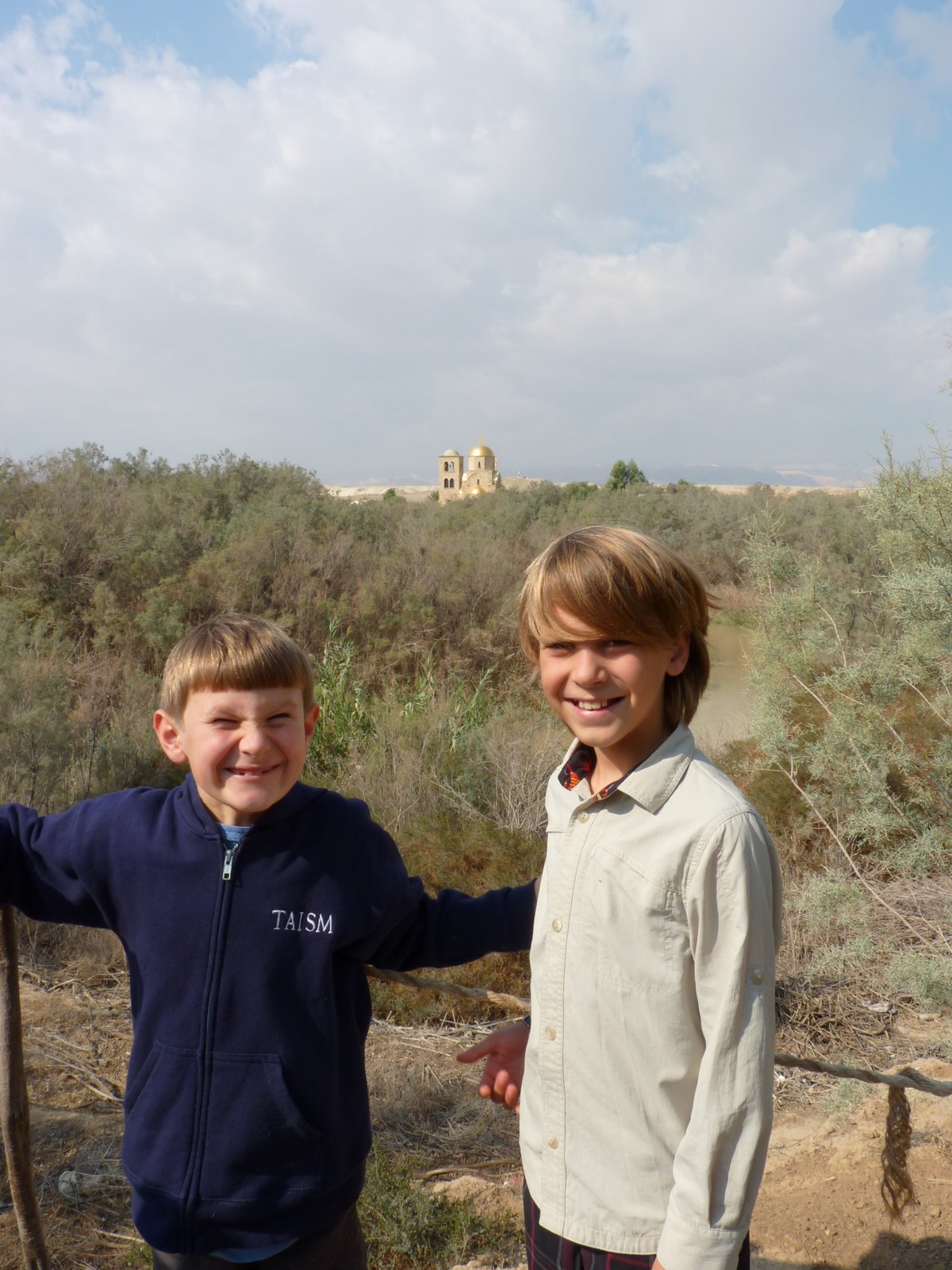 The boys were impressed that now I’ve been to the Jordan River on the Israeli side and the Jordanian side, although the river was a lot smaller than I remembered and the Israeli side was a much more official looking Tourist Attraction than it was when I was baptized there in 1989. In the olden days, I was baptized in my khaki shorts and peach tank top – or it could have been my peach shorts and khaki shirt. All the clothing I brought on the trip was peach or khaki so I could mix and match and everything would go together and I could pack as little as possible and follow the golden rule of travel with my dad: no checked baggage. After two and a half weeks I was sick of it all and haven’t worn peach since. Anyway, the point is, no white robe for me and I kept all my stuff to myself.
