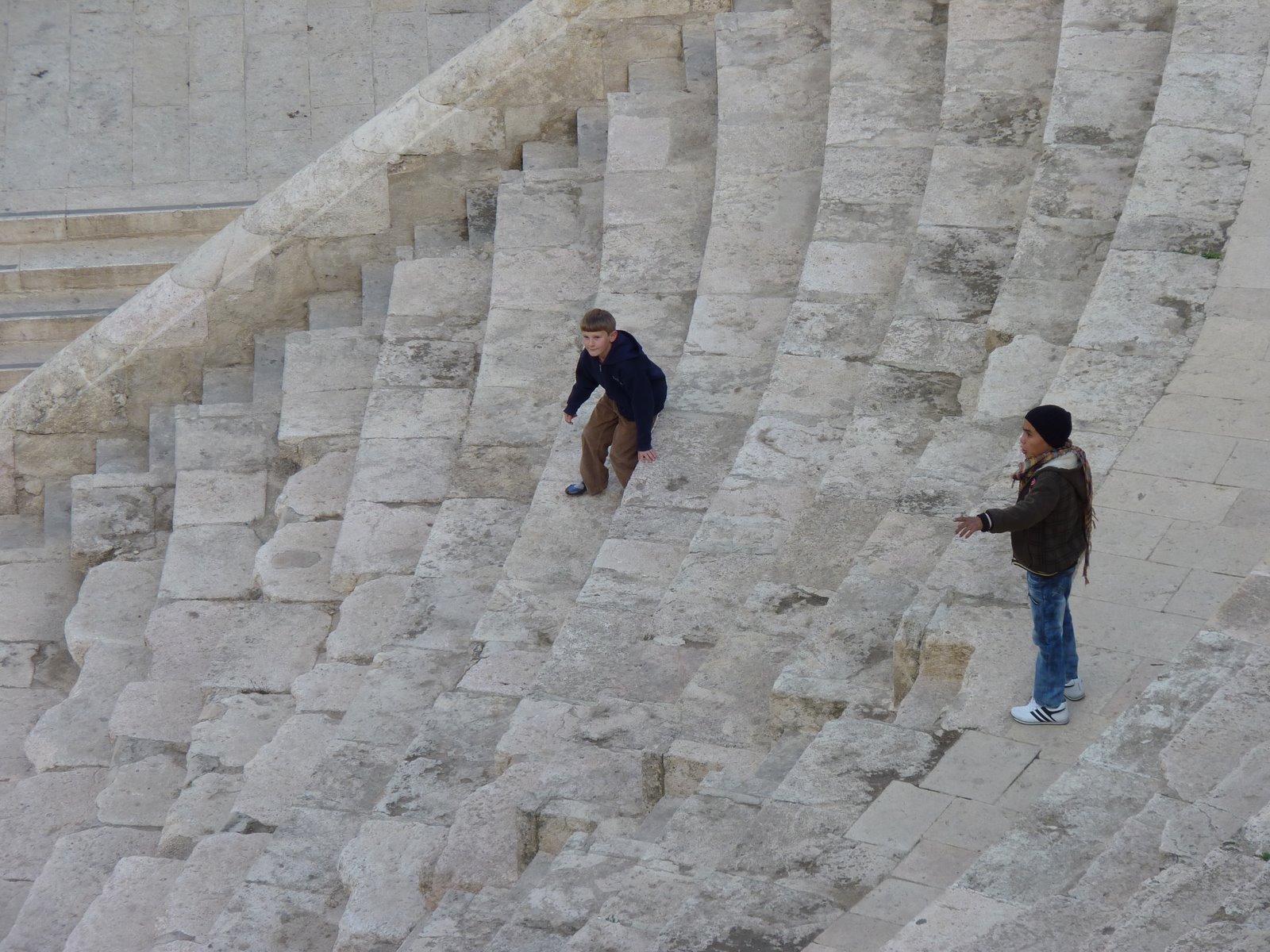 After my failed photography with the sheep, we stopped at the Roman Coliseum that is located right in downtown Amman. It wasn’t very crowded because it was “Christmas morning,” but there were groups of kids who lived nearby who were there playing and climbing up and down the many, many steps. They liked talking to Josh.