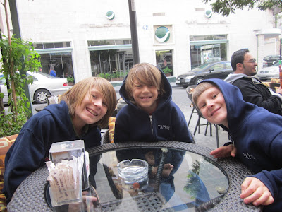 Another afternoon while the baby napped, the boys went out to explore and stopped at a cafe for drinks.