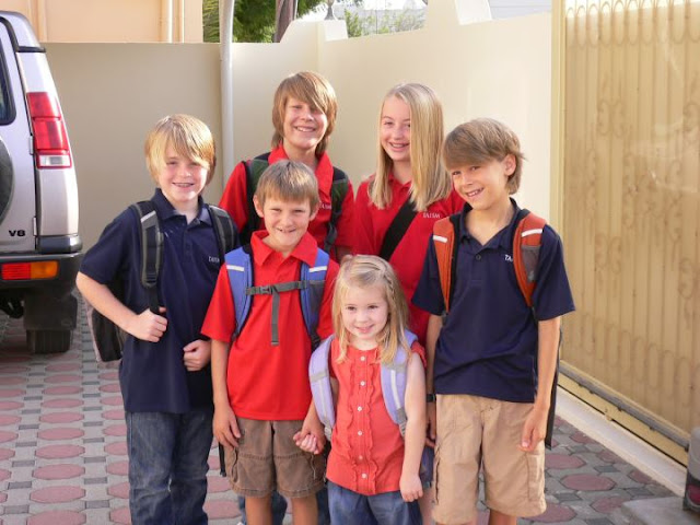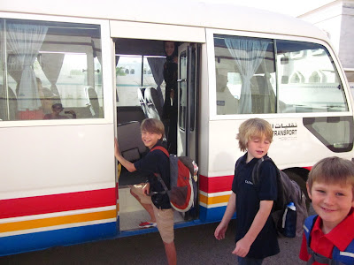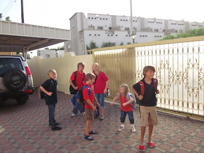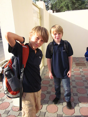 The other two boys had great days too. Over dinner they were all sharing stories and telling about the different classes they had (music, art, PE, Arabic, etc). Calvin told us his language arts teacher read a passage “from this weird book, something about a ghost and a booth of some kind” (hmm, I’m guessing that was The Phantom Tollbooth?) and his other exciting news was that he can order cappuccinos from the cafeteria and Dairy Queen blizzards at lunch on Sundays and Mondays if he wants since he’s in Middle School. He was pretty surprised to find out that we had already tested the coffee bar and found it worthy. Coffee and ice cream – that’s my boy, getting his priorities straight.
