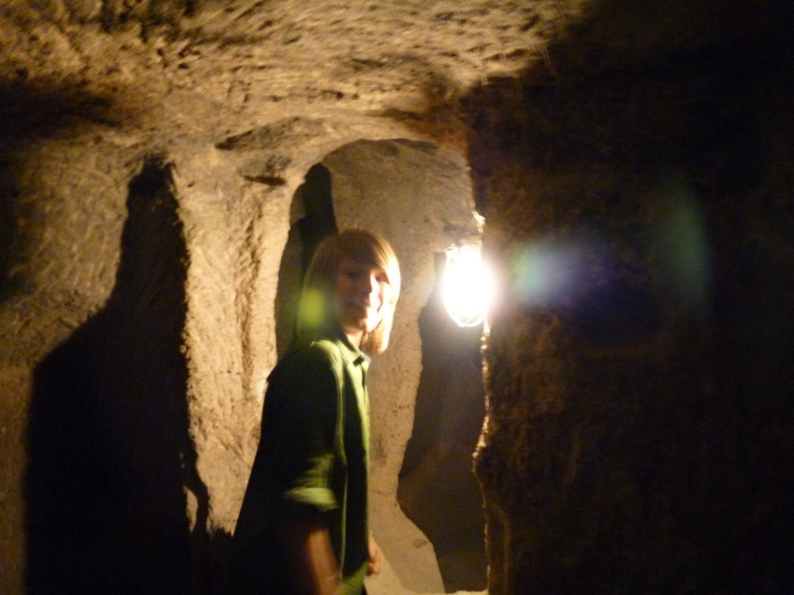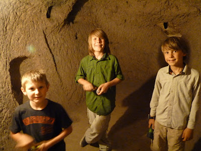 The main passages had some light (you can see the wiring running in this picture, but I guess a lot of the passages are completely dark. Josh said the boys started out with the idea of exploring all the side tunnels, but decided it was too dark. In all they saw stables, a church, living areas, kitchens, granaries, wineries, ventilation shafts, everything required to maintain a city, all underground.