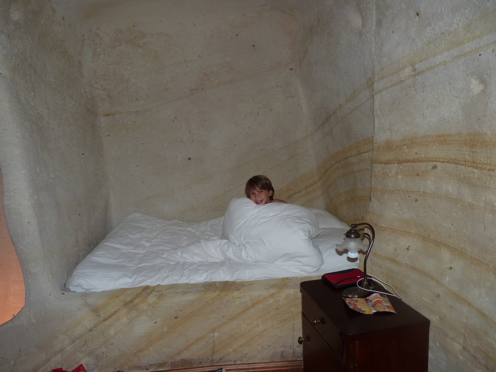 The kid’s bedroom was the most fun. There was a bed carved into the wall and the closets were created from smaller hollowed out areas. Perfect hiding and play spaces.